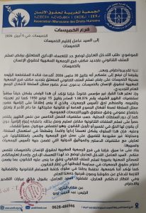 الجمعية توجهت برسالة احتجاج هادئة الى عامل اقليم الخميسات الملزم بايجاد حل قانوني صونا لحقوق الافراد والجماعات في ممارسة حقوقهم المشروعة.