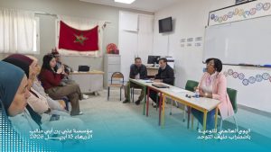 المداخلة الثانية: قدمها الأستاذ سفيان شكيب، وتمحورت حول “آليات وتقنيات التعامل السليم مع الأطفال في وضعية إعاقة“، مسلطاً الضوء على المقاربات السلوكية والنفسية الفعالة لبناء تواصل إيجابي، وتذليل الصعوبات التي قد تواجه المربي داخل الفصل.