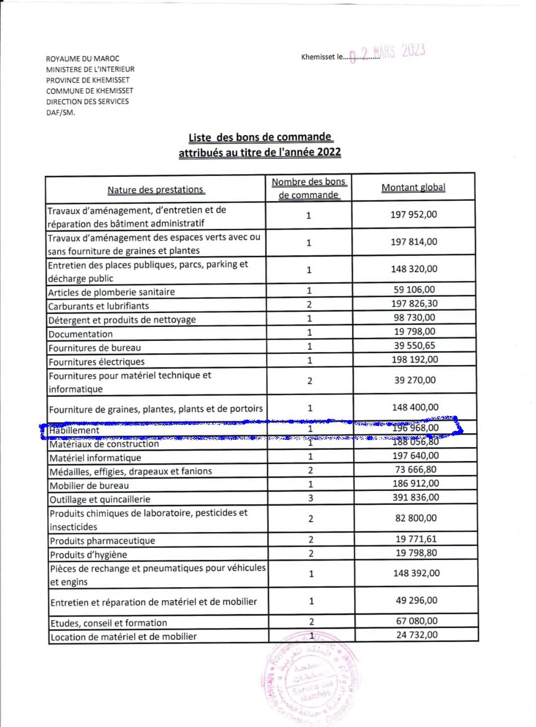ورغبة في وقف التبذير العشوائي والعمل على محاسبة المتورطين قمنا بتوجيه رسالة الى القاضي المكلف بجرائم الاموال بمحكمة الاسئناف معززة بالادلة للتحقيق في ملابسات العديد من الفصول الواردة في الوثيقة والتي تطرح علامات استفهام والاكيد ان التحقيقات التي ستفتح قريبا ستسقط الضالعين وكذا المقاولات المتواطئة التي استفادت من 60%من الطلبيات.