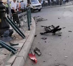السيارة التي يقودها سائق بسرعة جنونية خرجت من العدم وارتطمت بالشاب المسمى قيد حياته يوسف بنغالم الذي كان يمتطي دراجة نارية متوقفة والتي تحولت الى قطع حديدية صغيرة لقوة الارتطام واقتلعت الجوانب الحديدية للشارع الذي كان خاليا من المارة.